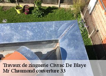 La société Mr Chaumond couverture 33 propose des solutions sur mesure pour votre toiture à Civrac de Blaye et dans toute la Gironde. Spécialisée dans les travaux de zinguerie, notre équipe expérimentée vous accompagne dans tous vos projets de rénovation ou de construction. Nous mettons notre expertise et notre savoir-faire à votre disposition pour réaliser des prestations de qualité, adaptées à vos besoins spécifiques. Que vous soyez un particulier ou un professionnel, nous sommes à votre écoute pour répondre à toutes vos demandes en matière de toiture. Nous intervenons dans toute la ville de Civrac de Blaye ainsi que dans les communes environnantes du département 3 Faites confiance à notre entreprise pour bénéficier d'un service de qualité et de tarifs compétitifs. Contactez-nous dès maintenant pour obtenir un devis gratuit et personnalisé pour vos travaux de zinguerie à Civrac de Blaye.